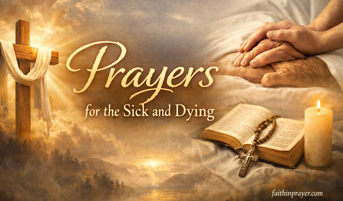 May the lessons of patience, faith, and surrender guide both the sick and those who stand beside them. Let the prayers for healing, courage, forgiveness, and eternal life remind us that even in frailty, God’s love is abundant and sustaining. In every moment of suffering, His presence can bring comfort; in every shadow of fear, His light can shine. As we pray for the sick and dying, we not only intercede for physical healing or peaceful passing but also witness the eternal truth that God is with us in every breath, every heartbeat, and every prayer. Through devotion, hope, and unwavering trust, the soul finds rest, families find strength, and hearts are reminded that life’s greatest trials can become avenues for experiencing God’s boundless mercy and grace.